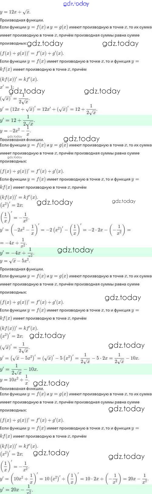 Ответы к Решение. §41. Вычисление производных 41.7 Задачнику по Алгебре для 10 класса Мордкович, Семёнов Базовый и углубленный уровень Мнемозина 2017