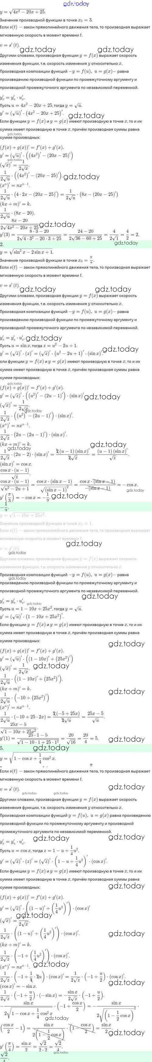 Ответы к Решение. §42. Дифференцирование сложной функции. Дифференцирование обратной функции 42.15 Задачнику по Алгебре для 10 класса Мордкович, Семёнов Базовый и углубленный уровень Мнемозина 2017