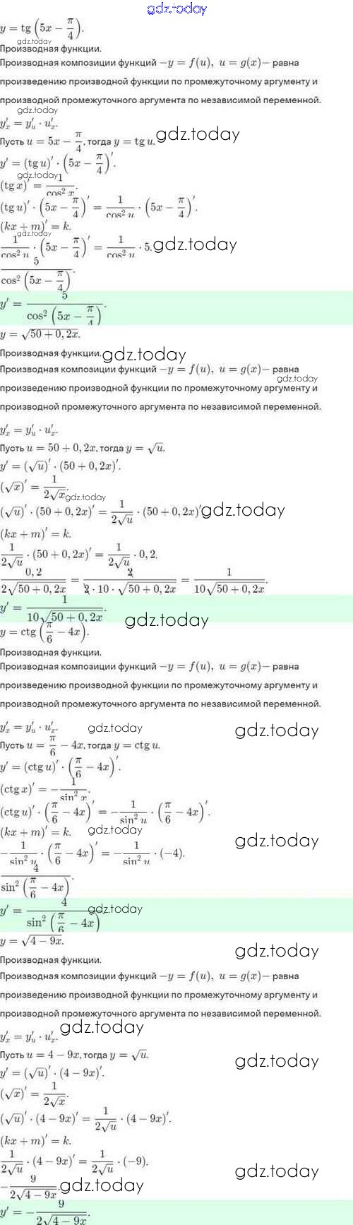 Ответы к Решение. §42. Дифференцирование сложной функции. Дифференцирование обратной функции 42.3 Задачнику по Алгебре для 10 класса Мордкович, Семёнов Базовый и углубленный уровень Мнемозина 2017