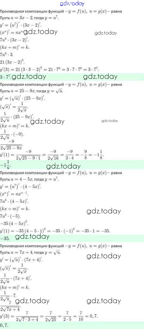 Ответы к Решение. §42. Дифференцирование сложной функции. Дифференцирование обратной функции 42.9 Задачнику по Алгебре для 10 класса Мордкович, Семёнов Базовый и углубленный уровень Мнемозина 2017