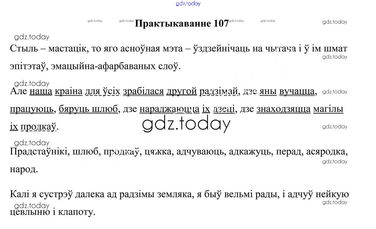 На страницах сайта gdz.today вы найдете учебный и вспомогательный материал, направленный на улучшения знаний школьной программы. ГДЗ - онлайн мир знаний Рашальнік да практыкаванняў 107 Учебнику по Белорусскому языку для 10 класса Валочка, Васюковіч Национальный институт образования 2016
