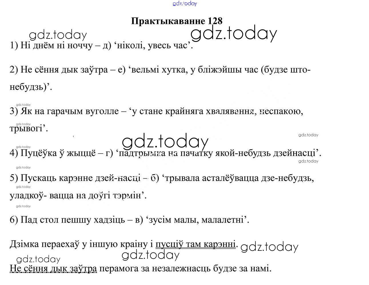 На страницах сайта gdz.today вы найдете учебный и вспомогательный материал, направленный на улучшения знаний школьной программы. ГДЗ - онлайн мир знаний Рашальнік да практыкаванняў 128 Учебнику по Белорусскому языку для 10 класса Валочка, Васюковіч Национальный институт образования 2016