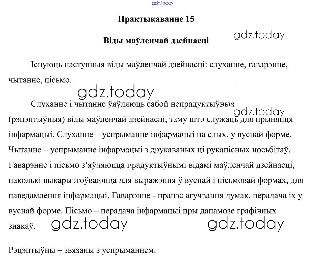 На страницах сайта gdz.today вы найдете учебный и вспомогательный материал, направленный на улучшения знаний школьной программы. ГДЗ - онлайн мир знаний Рашальнік да практыкаванняў 15 Учебнику по Белорусскому языку для 10 класса Валочка, Васюковіч Национальный институт образования 2016