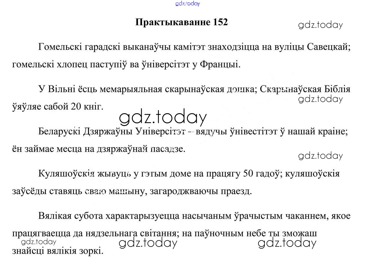На страницах сайта gdz.today вы найдете учебный и вспомогательный материал, направленный на улучшения знаний школьной программы. ГДЗ - онлайн мир знаний Рашальнік да практыкаванняў 152 Учебнику по Белорусскому языку для 10 класса Валочка, Васюковіч Национальный институт образования 2016
