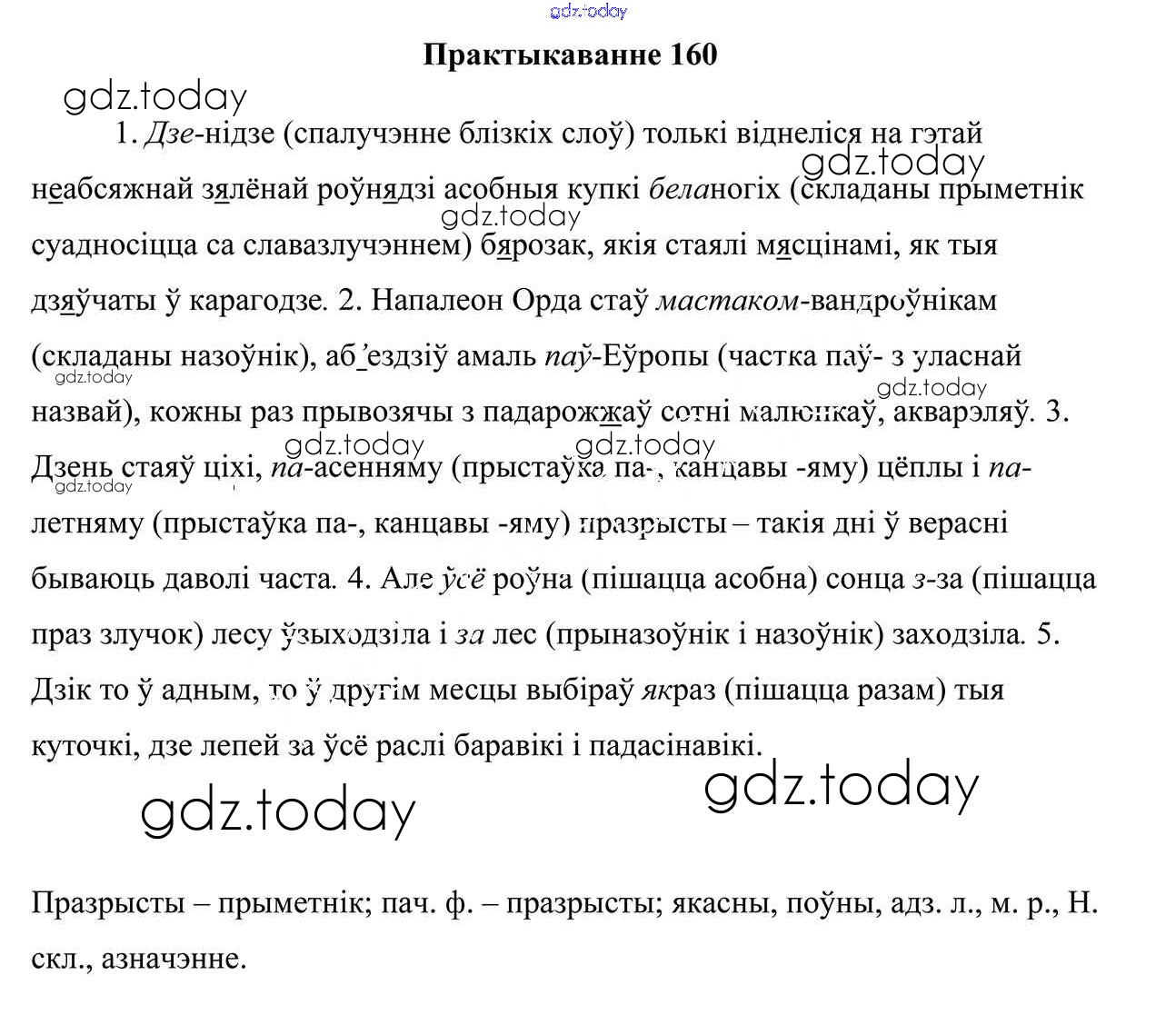 На страницах сайта gdz.today вы найдете учебный и вспомогательный материал, направленный на улучшения знаний школьной программы. ГДЗ - онлайн мир знаний Рашальнік да практыкаванняў 160 Учебнику по Белорусскому языку для 10 класса Валочка, Васюковіч Национальный институт образования 2016