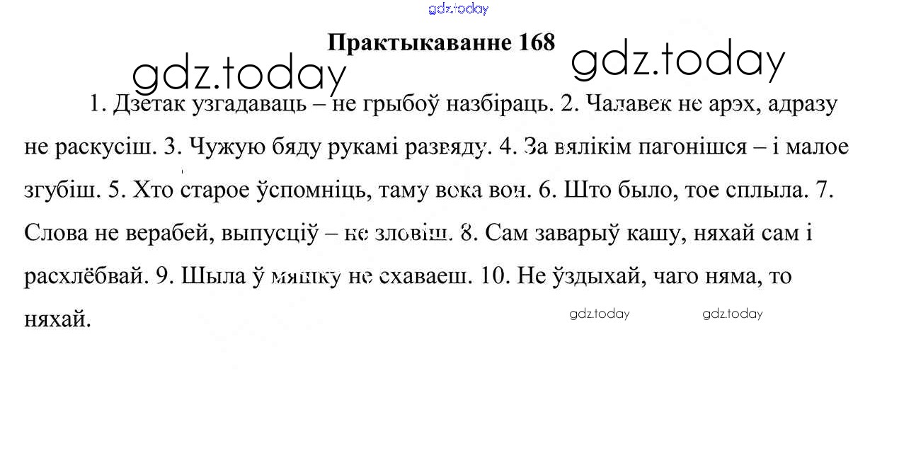 На страницах сайта gdz.today вы найдете учебный и вспомогательный материал, направленный на улучшения знаний школьной программы. ГДЗ - онлайн мир знаний Рашальнік да практыкаванняў 168 Учебнику по Белорусскому языку для 10 класса Валочка, Васюковіч Национальный институт образования 2016