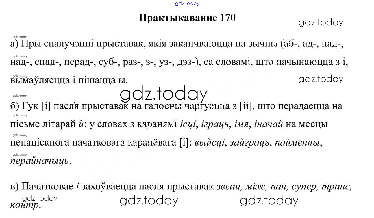 На страницах сайта gdz.today вы найдете учебный и вспомогательный материал, направленный на улучшения знаний школьной программы. ГДЗ - онлайн мир знаний Рашальнік да практыкаванняў 170 Учебнику по Белорусскому языку для 10 класса Валочка, Васюковіч Национальный институт образования 2016