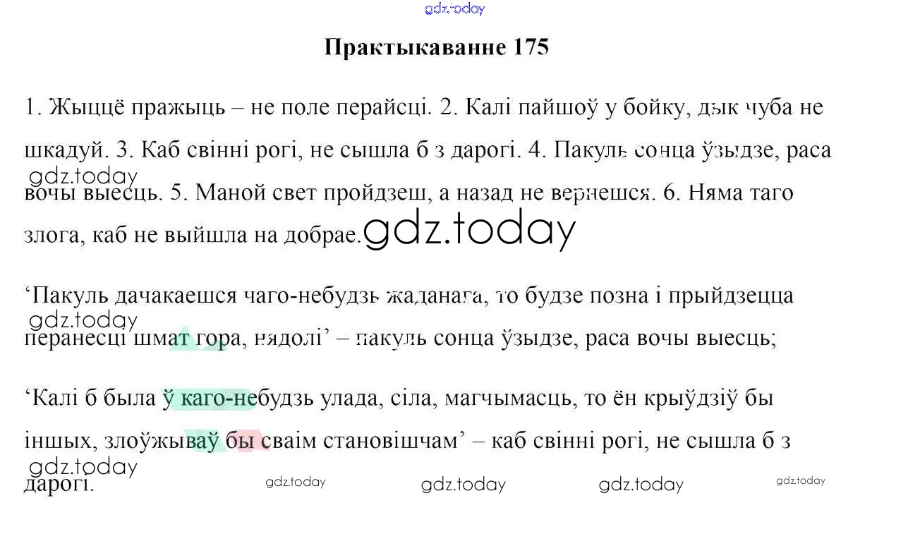 На страницах сайта gdz.today вы найдете учебный и вспомогательный материал, направленный на улучшения знаний школьной программы. ГДЗ - онлайн мир знаний Рашальнік да практыкаванняў 175 Учебнику по Белорусскому языку для 10 класса Валочка, Васюковіч Национальный институт образования 2016