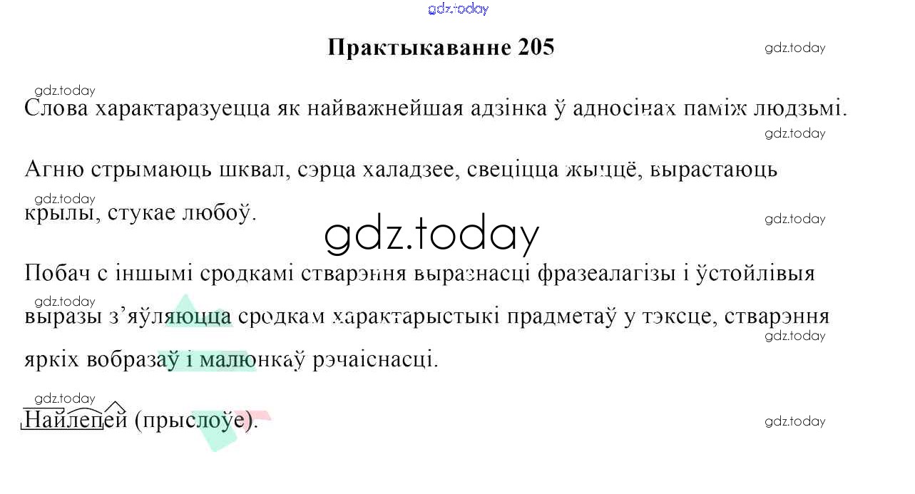 На страницах сайта gdz.today вы найдете учебный и вспомогательный материал, направленный на улучшения знаний школьной программы. ГДЗ - онлайн мир знаний Рашальнік да практыкаванняў 205 Учебнику по Белорусскому языку для 10 класса Валочка, Васюковіч Национальный институт образования 2016