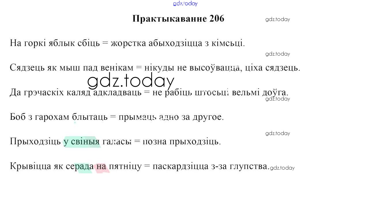 На страницах сайта gdz.today вы найдете учебный и вспомогательный материал, направленный на улучшения знаний школьной программы. ГДЗ - онлайн мир знаний Рашальнік да практыкаванняў 206 Учебнику по Белорусскому языку для 10 класса Валочка, Васюковіч Национальный институт образования 2016