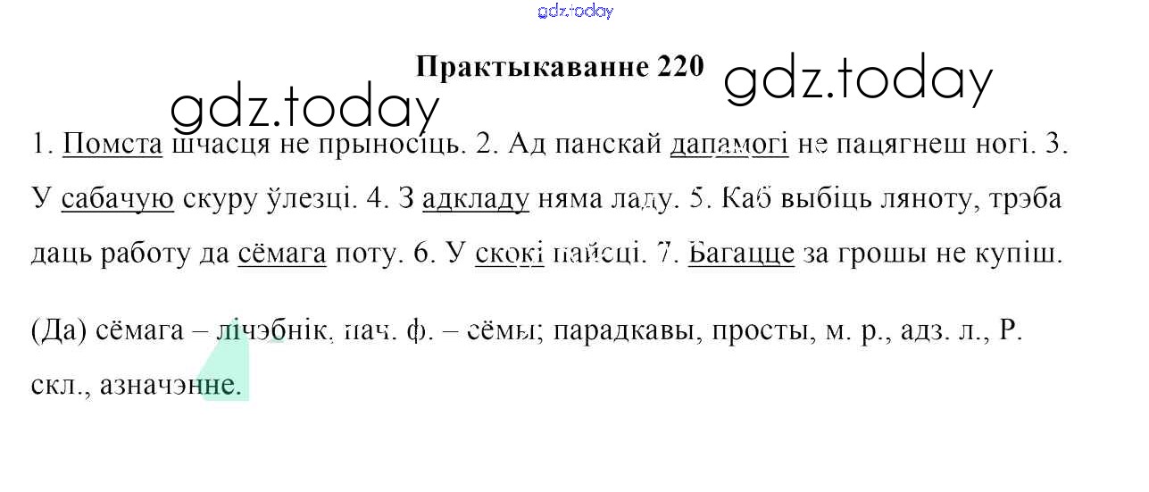 На страницах сайта gdz.today вы найдете учебный и вспомогательный материал, направленный на улучшения знаний школьной программы. ГДЗ - онлайн мир знаний Рашальнік да практыкаванняў 220 Учебнику по Белорусскому языку для 10 класса Валочка, Васюковіч Национальный институт образования 2016