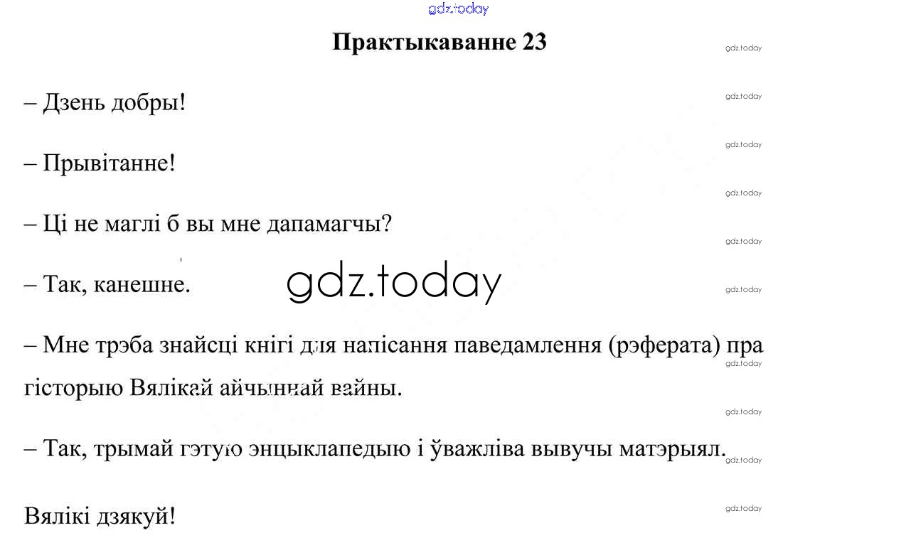 На страницах сайта gdz.today вы найдете учебный и вспомогательный материал, направленный на улучшения знаний школьной программы. ГДЗ - онлайн мир знаний Рашальнік да практыкаванняў 23 Учебнику по Белорусскому языку для 10 класса Валочка, Васюковіч Национальный институт образования 2016