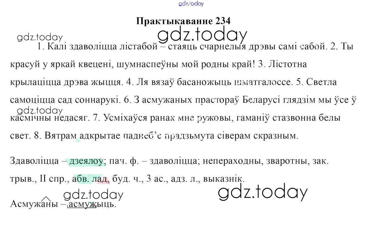 На страницах сайта gdz.today вы найдете учебный и вспомогательный материал, направленный на улучшения знаний школьной программы. ГДЗ - онлайн мир знаний Рашальнік да практыкаванняў 234 Учебнику по Белорусскому языку для 10 класса Валочка, Васюковіч Национальный институт образования 2016