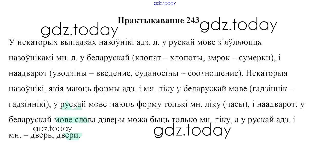 На страницах сайта gdz.today вы найдете учебный и вспомогательный материал, направленный на улучшения знаний школьной программы. ГДЗ - онлайн мир знаний Рашальнік да практыкаванняў 243 Учебнику по Белорусскому языку для 10 класса Валочка, Васюковіч Национальный институт образования 2016