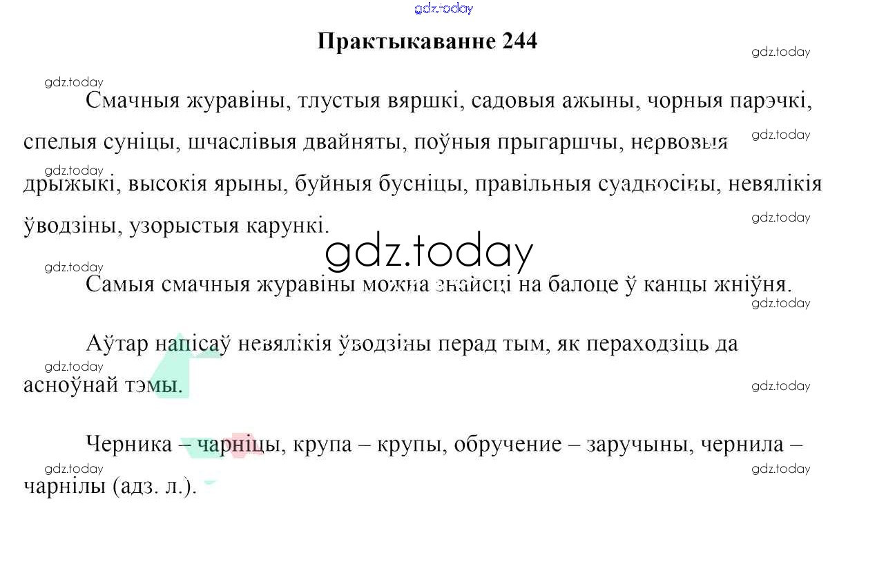 На страницах сайта gdz.today вы найдете учебный и вспомогательный материал, направленный на улучшения знаний школьной программы. ГДЗ - онлайн мир знаний Рашальнік да практыкаванняў 244 Учебнику по Белорусскому языку для 10 класса Валочка, Васюковіч Национальный институт образования 2016
