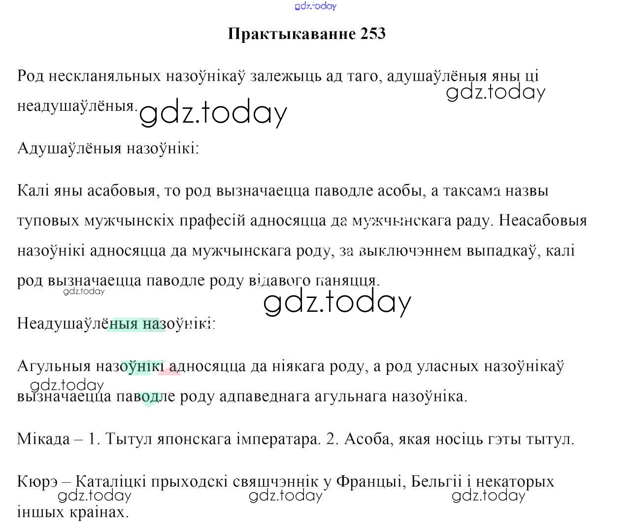 На страницах сайта gdz.today вы найдете учебный и вспомогательный материал, направленный на улучшения знаний школьной программы. ГДЗ - онлайн мир знаний Рашальнік да практыкаванняў 253 Учебнику по Белорусскому языку для 10 класса Валочка, Васюковіч Национальный институт образования 2016