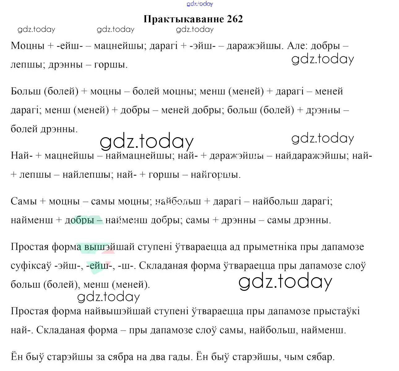 На страницах сайта gdz.today вы найдете учебный и вспомогательный материал, направленный на улучшения знаний школьной программы. ГДЗ - онлайн мир знаний Рашальнік да практыкаванняў 262 Учебнику по Белорусскому языку для 10 класса Валочка, Васюковіч Национальный институт образования 2016