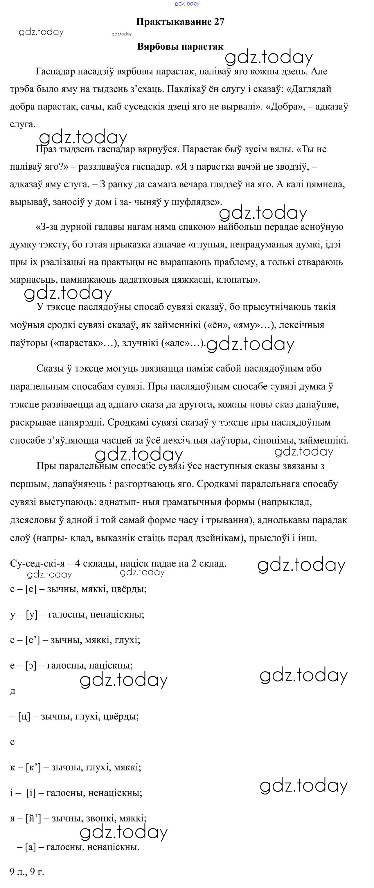 На страницах сайта gdz.today вы найдете учебный и вспомогательный материал, направленный на улучшения знаний школьной программы. ГДЗ - онлайн мир знаний Рашальнік да практыкаванняў 27 Учебнику по Белорусскому языку для 10 класса Валочка, Васюковіч Национальный институт образования 2016