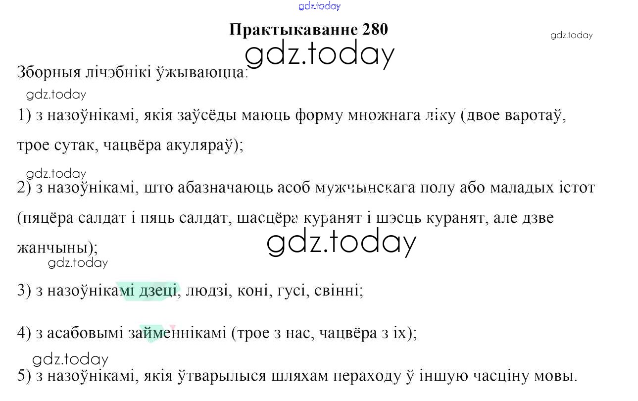 На страницах сайта gdz.today вы найдете учебный и вспомогательный материал, направленный на улучшения знаний школьной программы. ГДЗ - онлайн мир знаний Рашальнік да практыкаванняў 280 Учебнику по Белорусскому языку для 10 класса Валочка, Васюковіч Национальный институт образования 2016