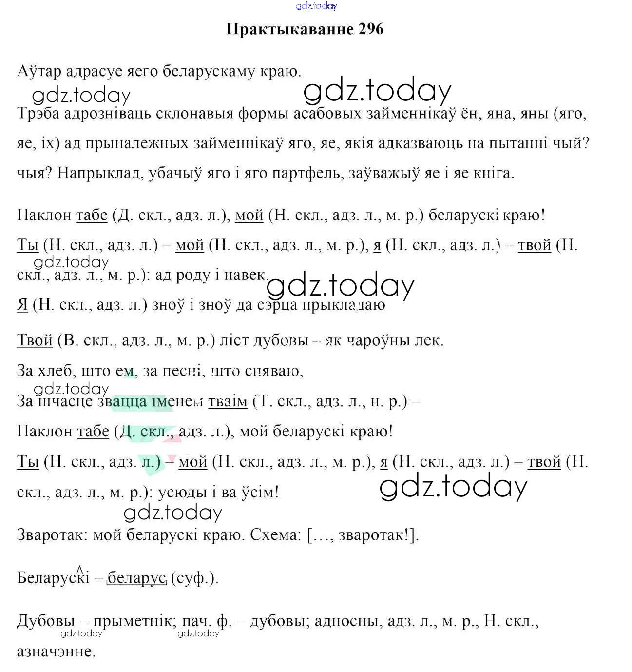 На страницах сайта gdz.today вы найдете учебный и вспомогательный материал, направленный на улучшения знаний школьной программы. ГДЗ - онлайн мир знаний Рашальнік да практыкаванняў 296 Учебнику по Белорусскому языку для 10 класса Валочка, Васюковіч Национальный институт образования 2016