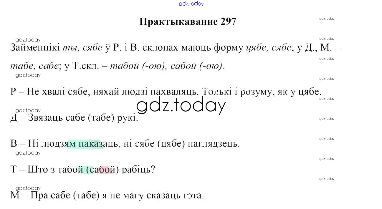 На страницах сайта gdz.today вы найдете учебный и вспомогательный материал, направленный на улучшения знаний школьной программы. ГДЗ - онлайн мир знаний Рашальнік да практыкаванняў 297 Учебнику по Белорусскому языку для 10 класса Валочка, Васюковіч Национальный институт образования 2016
