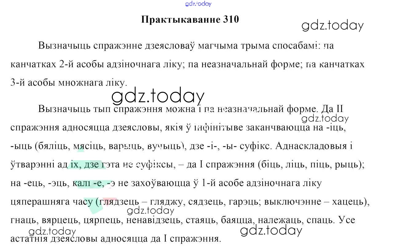 На страницах сайта gdz.today вы найдете учебный и вспомогательный материал, направленный на улучшения знаний школьной программы. ГДЗ - онлайн мир знаний Рашальнік да практыкаванняў 310 Учебнику по Белорусскому языку для 10 класса Валочка, Васюковіч Национальный институт образования 2016