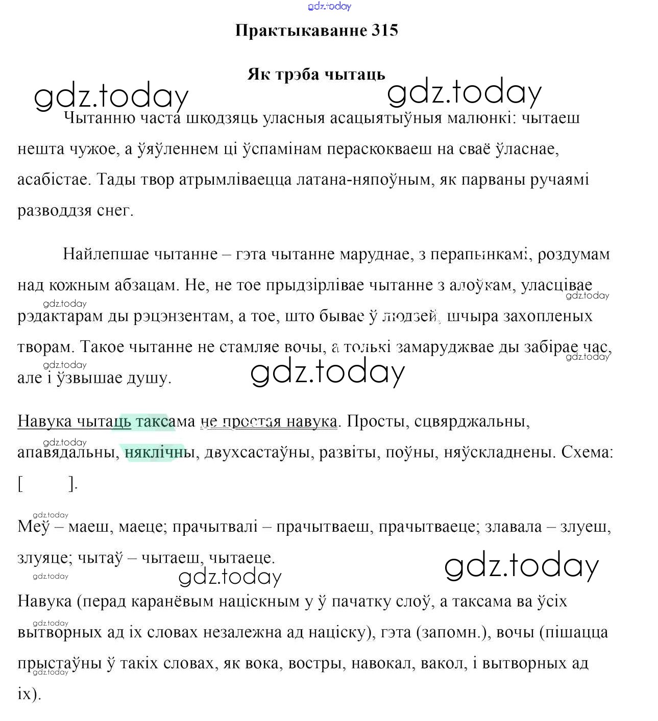 На страницах сайта gdz.today вы найдете учебный и вспомогательный материал, направленный на улучшения знаний школьной программы. ГДЗ - онлайн мир знаний Рашальнік да практыкаванняў 315 Учебнику по Белорусскому языку для 10 класса Валочка, Васюковіч Национальный институт образования 2016