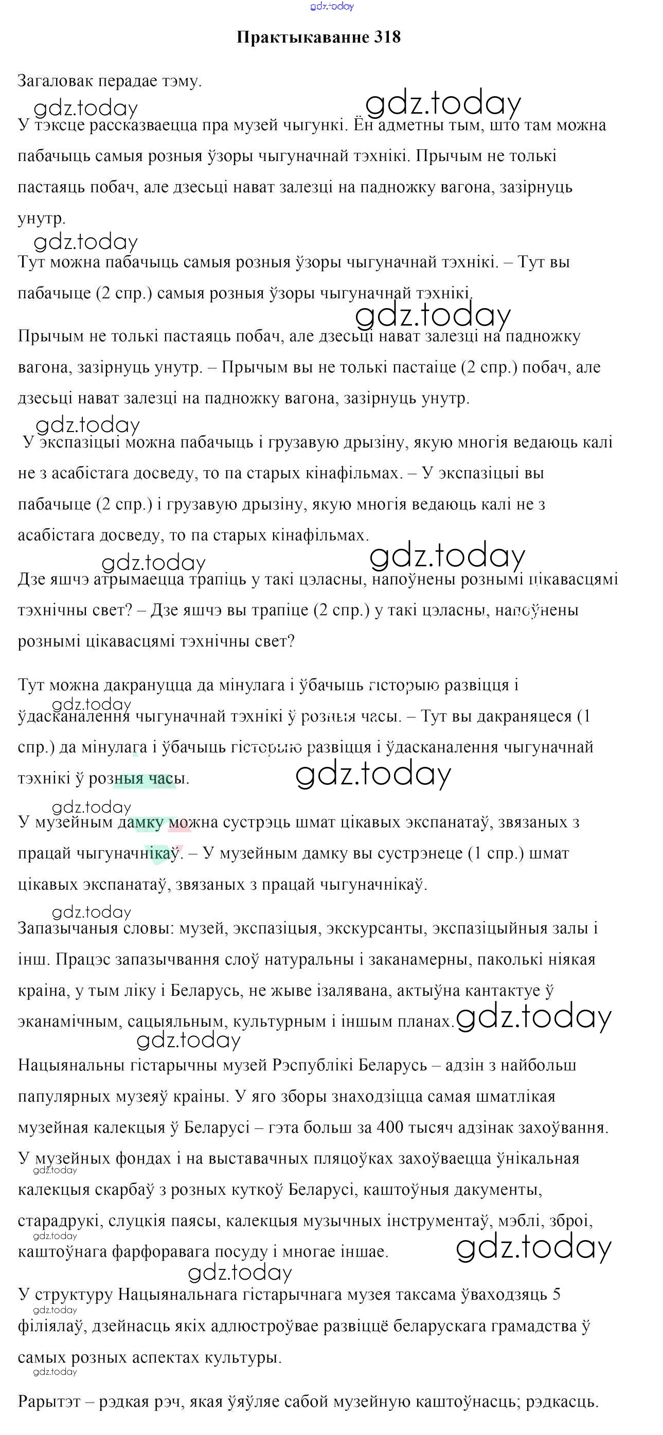 На страницах сайта gdz.today вы найдете учебный и вспомогательный материал, направленный на улучшения знаний школьной программы. ГДЗ - онлайн мир знаний Рашальнік да практыкаванняў 318 Учебнику по Белорусскому языку для 10 класса Валочка, Васюковіч Национальный институт образования 2016