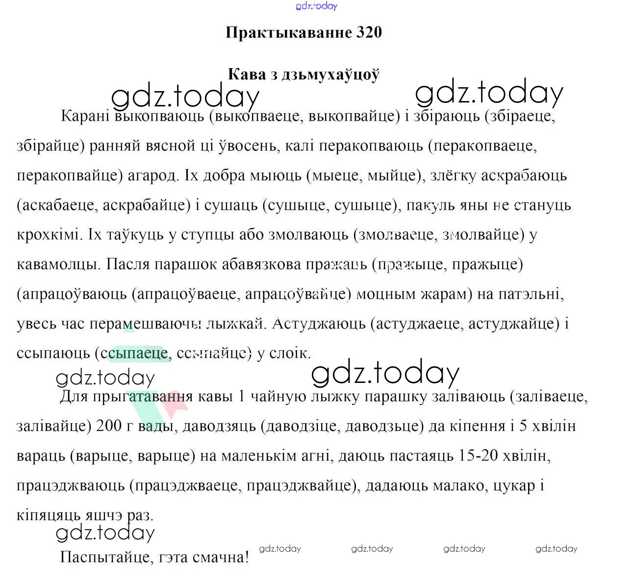На страницах сайта gdz.today вы найдете учебный и вспомогательный материал, направленный на улучшения знаний школьной программы. ГДЗ - онлайн мир знаний Рашальнік да практыкаванняў 320 Учебнику по Белорусскому языку для 10 класса Валочка, Васюковіч Национальный институт образования 2016