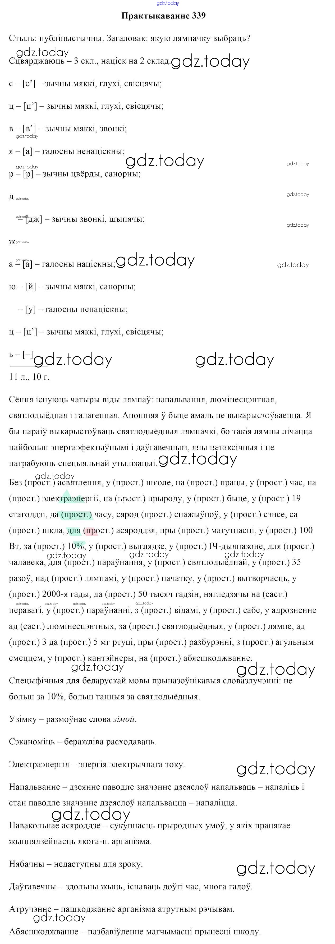 На страницах сайта gdz.today вы найдете учебный и вспомогательный материал, направленный на улучшения знаний школьной программы. ГДЗ - онлайн мир знаний Рашальнік да практыкаванняў 339 Учебнику по Белорусскому языку для 10 класса Валочка, Васюковіч Национальный институт образования 2016