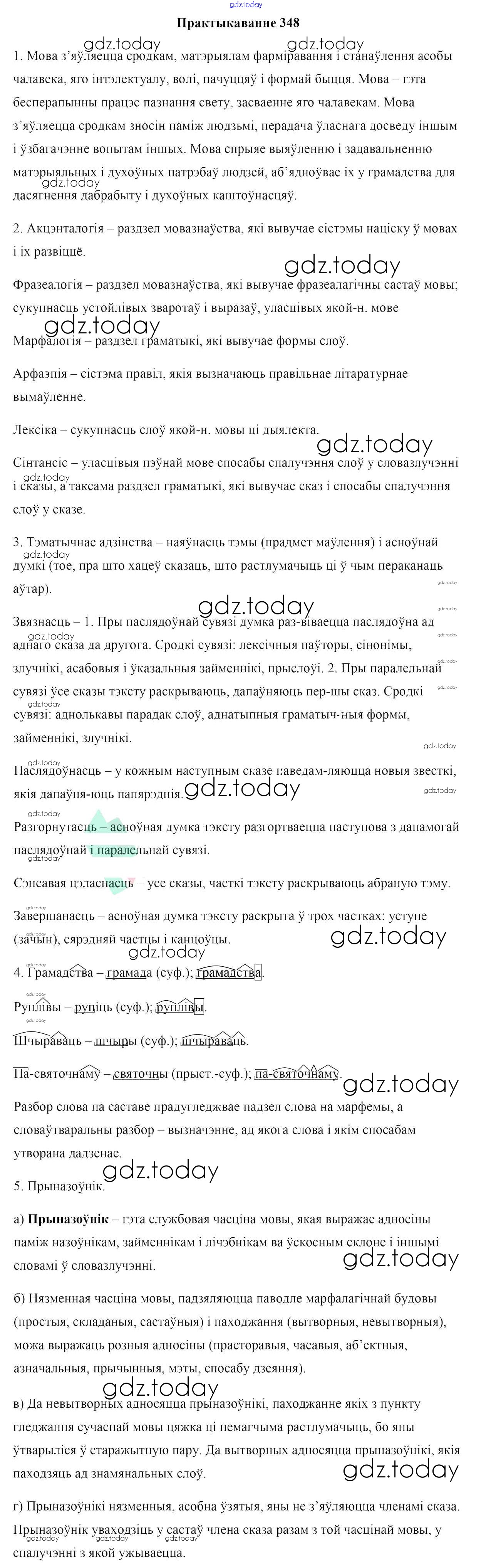 На страницах сайта gdz.today вы найдете учебный и вспомогательный материал, направленный на улучшения знаний школьной программы. ГДЗ - онлайн мир знаний Рашальнік да практыкаванняў 348 Учебнику по Белорусскому языку для 10 класса Валочка, Васюковіч Национальный институт образования 2016
