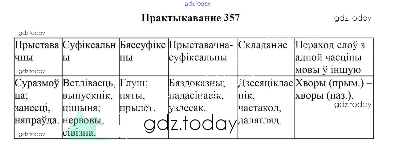 На страницах сайта gdz.today вы найдете учебный и вспомогательный материал, направленный на улучшения знаний школьной программы. ГДЗ - онлайн мир знаний Рашальнік да практыкаванняў 357 Учебнику по Белорусскому языку для 10 класса Валочка, Васюковіч Национальный институт образования 2016