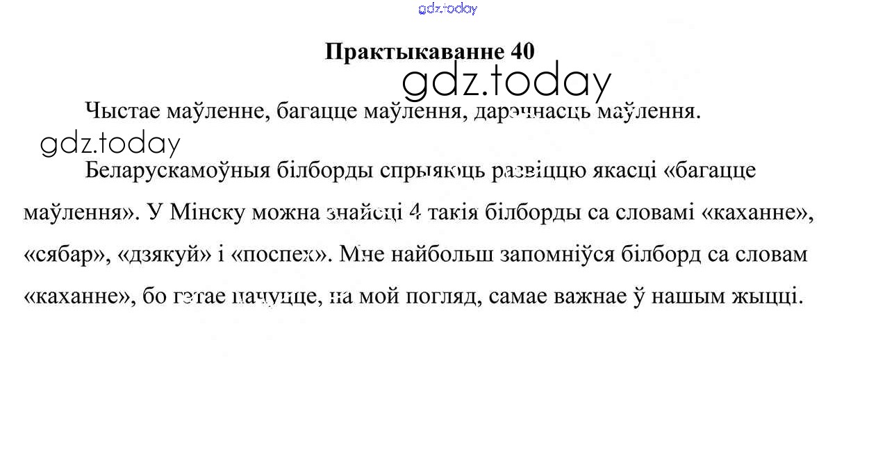 На страницах сайта gdz.today вы найдете учебный и вспомогательный материал, направленный на улучшения знаний школьной программы. ГДЗ - онлайн мир знаний Рашальнік да практыкаванняў 40 Учебнику по Белорусскому языку для 10 класса Валочка, Васюковіч Национальный институт образования 2016