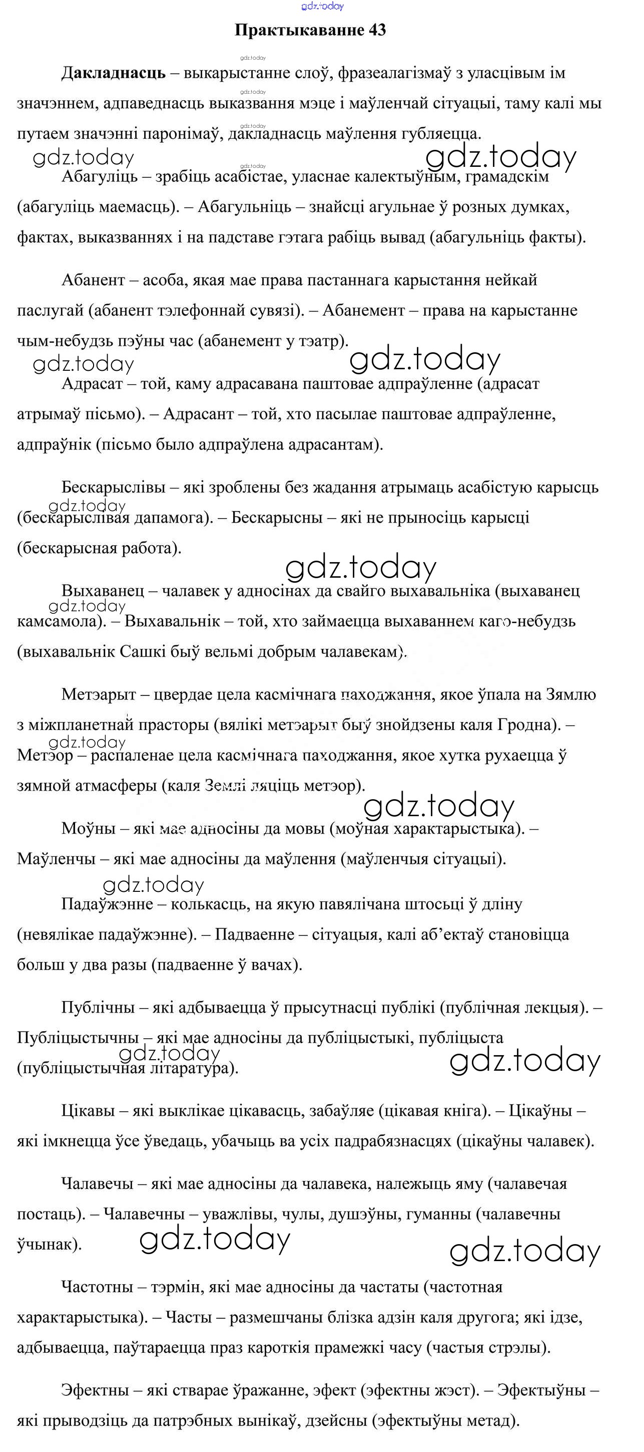 На страницах сайта gdz.today вы найдете учебный и вспомогательный материал, направленный на улучшения знаний школьной программы. ГДЗ - онлайн мир знаний Рашальнік да практыкаванняў 43 Учебнику по Белорусскому языку для 10 класса Валочка, Васюковіч Национальный институт образования 2016