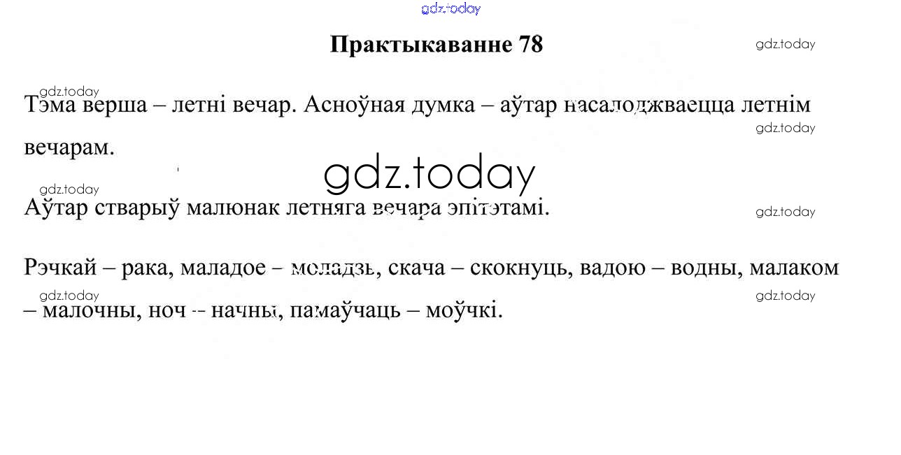 На страницах сайта gdz.today вы найдете учебный и вспомогательный материал, направленный на улучшения знаний школьной программы. ГДЗ - онлайн мир знаний Рашальнік да практыкаванняў 78 Учебнику по Белорусскому языку для 10 класса Валочка, Васюковіч Национальный институт образования 2016
