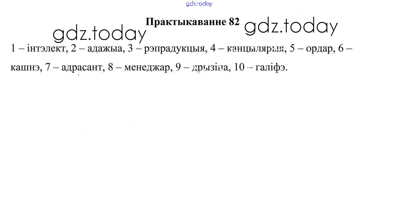На страницах сайта gdz.today вы найдете учебный и вспомогательный материал, направленный на улучшения знаний школьной программы. ГДЗ - онлайн мир знаний Рашальнік да практыкаванняў 82 Учебнику по Белорусскому языку для 10 класса Валочка, Васюковіч Национальный институт образования 2016