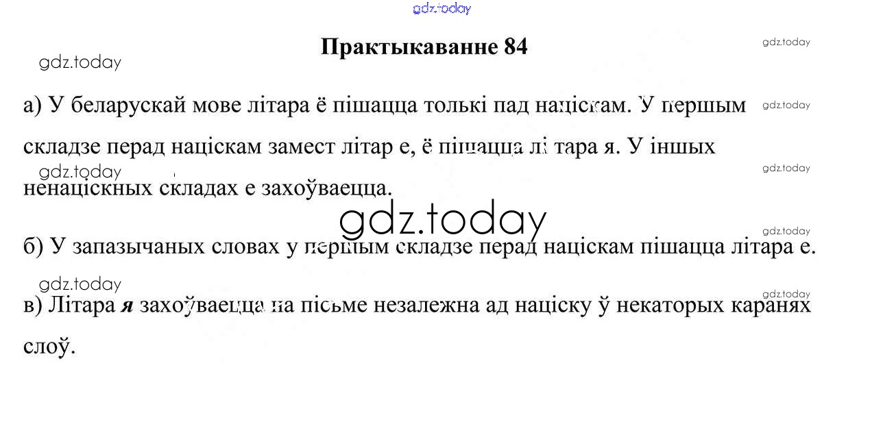 На страницах сайта gdz.today вы найдете учебный и вспомогательный материал, направленный на улучшения знаний школьной программы. ГДЗ - онлайн мир знаний Рашальнік да практыкаванняў 84 Учебнику по Белорусскому языку для 10 класса Валочка, Васюковіч Национальный институт образования 2016