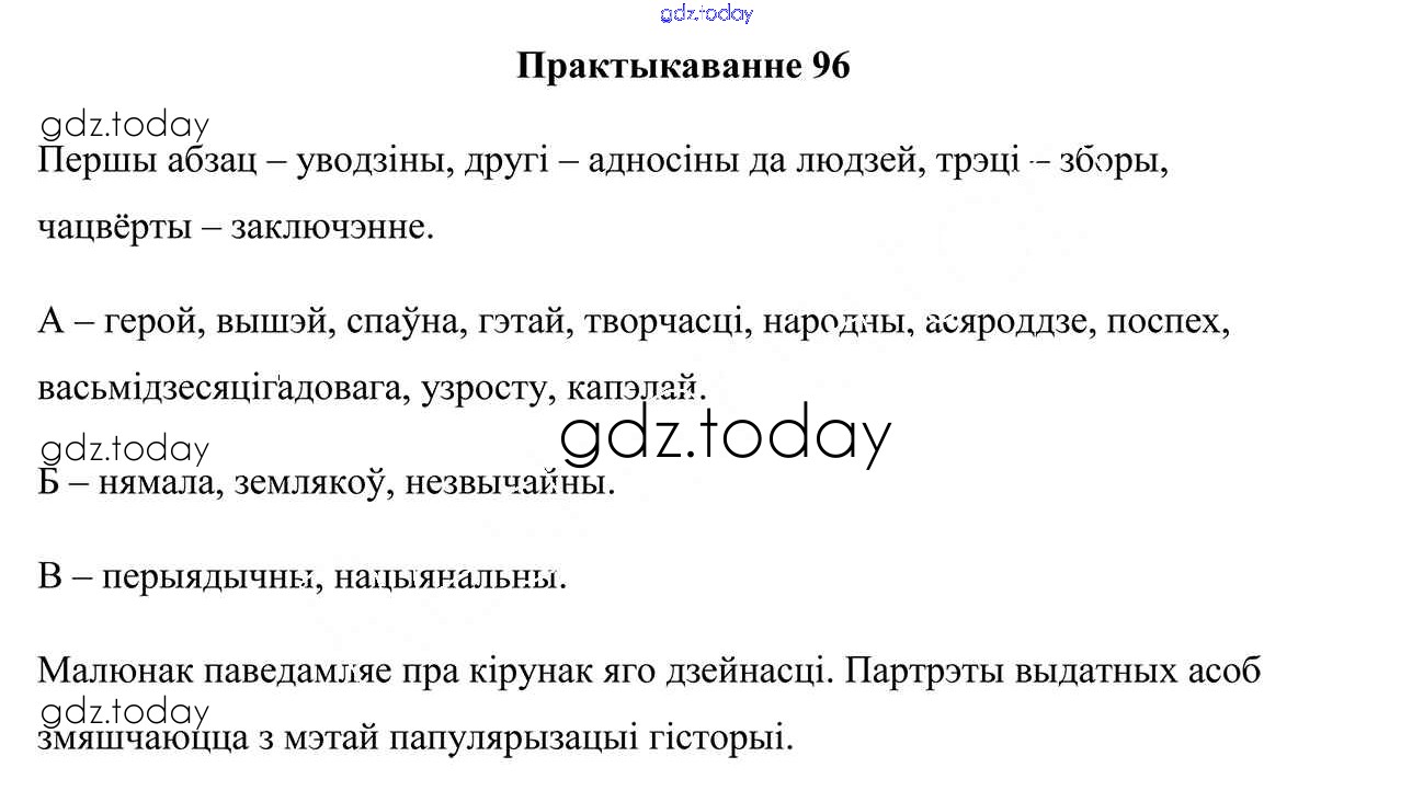 На страницах сайта gdz.today вы найдете учебный и вспомогательный материал, направленный на улучшения знаний школьной программы. ГДЗ - онлайн мир знаний Рашальнік да практыкаванняў 96 Учебнику по Белорусскому языку для 10 класса Валочка, Васюковіч Национальный институт образования 2016