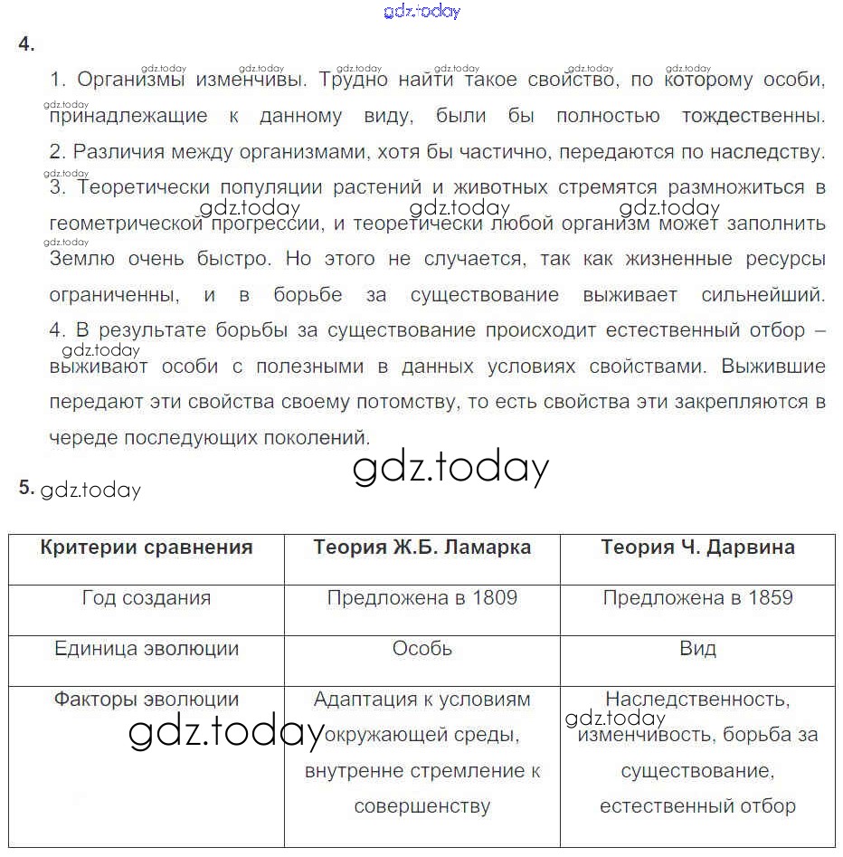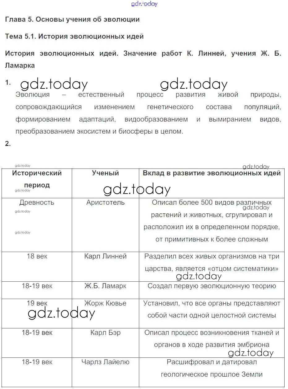 На страницах сайта gdz.today вы найдете учебный и вспомогательный материал, направленный на улучшения знаний школьной программы. ГДЗ - онлайн мир знаний Решение к главе 5. Основы учения об эволюции Тема 1 Рабочей тетради по Биологии для 10-11 класса Пасечник, Швецов Базовый уровень Дрофа УМК 2017