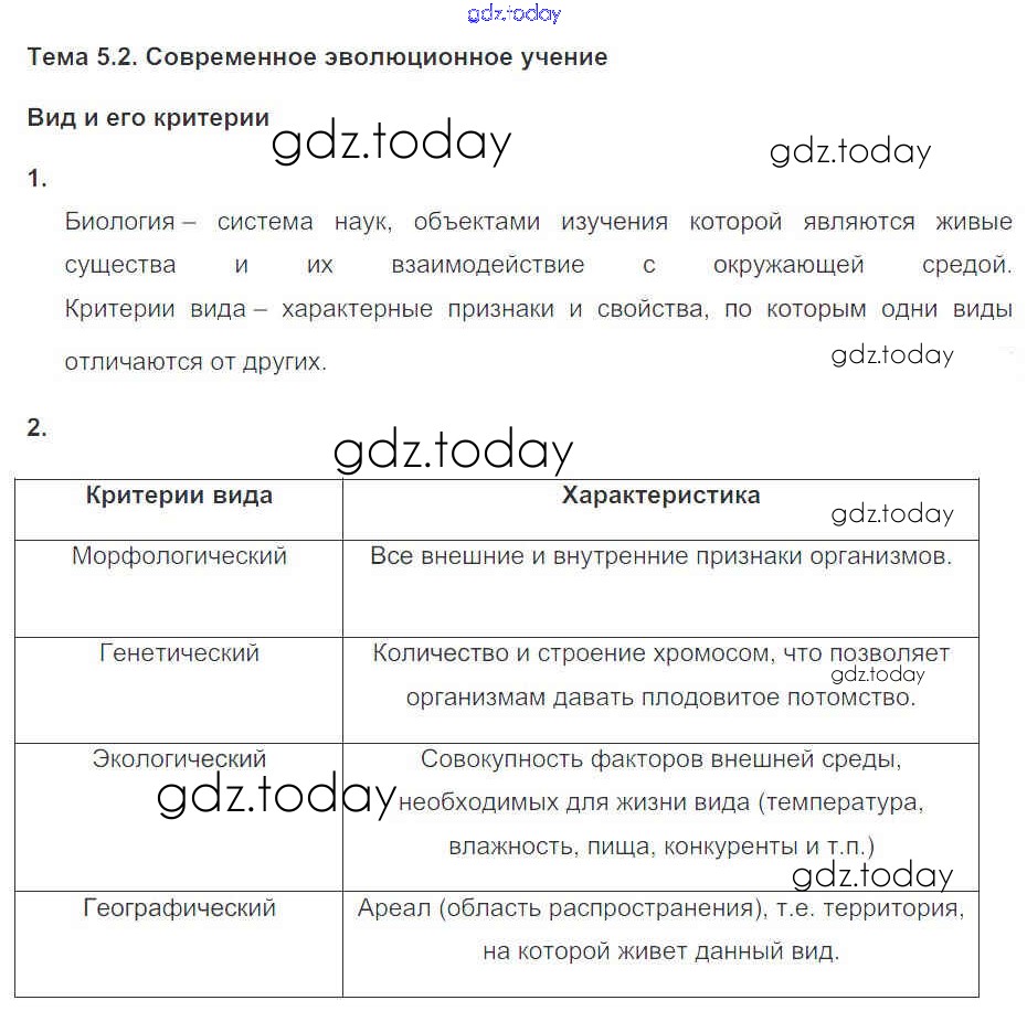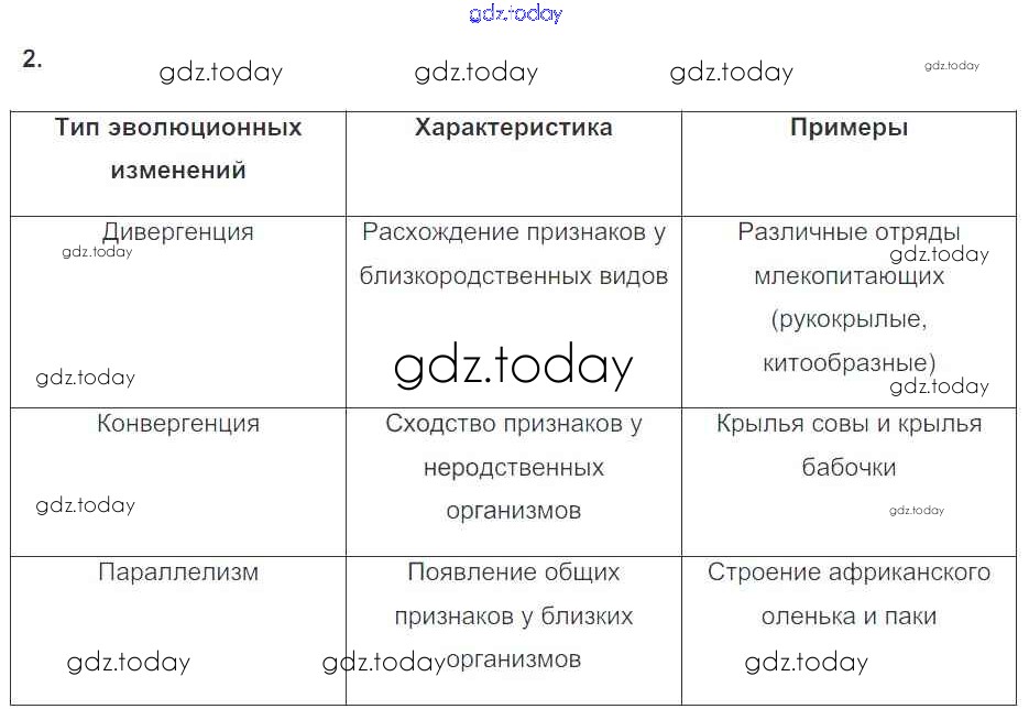 На страницах сайта gdz.today вы найдете учебный и вспомогательный материал, направленный на улучшения знаний школьной программы. ГДЗ - онлайн мир знаний Решение к главе 5. Основы учения об эволюции Тема 2 Рабочей тетради по Биологии для 10-11 класса Пасечник, Швецов Базовый уровень Дрофа УМК 2017