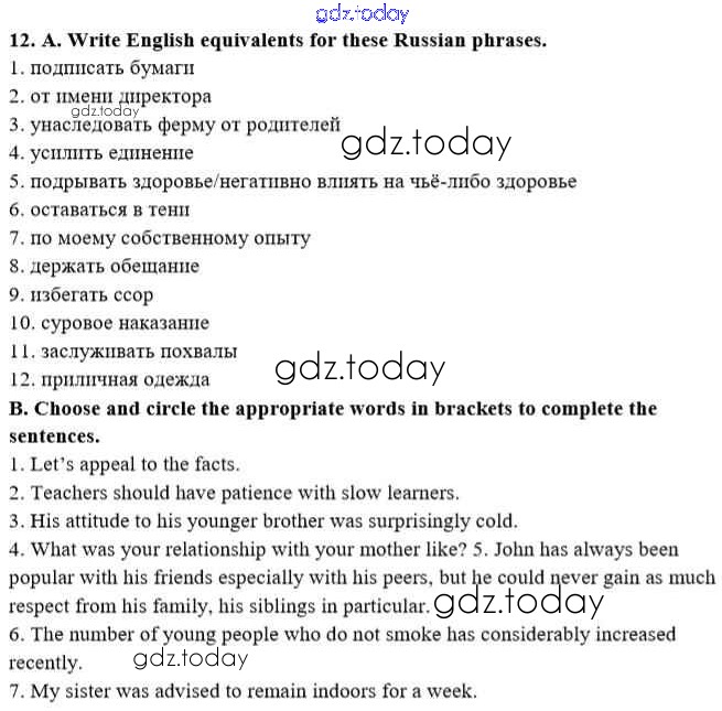 На страницах сайта gdz.today вы найдете учебный и вспомогательный материал, направленный на улучшения знаний школьной программы. ГДЗ - онлайн мир знаний Решение к Unit 2. In Harmony with Others 12 Рабочей тетради по Английскому языку для 10 класса Афанасьева, Михеева Дрофа Rainbow 2016