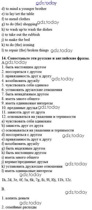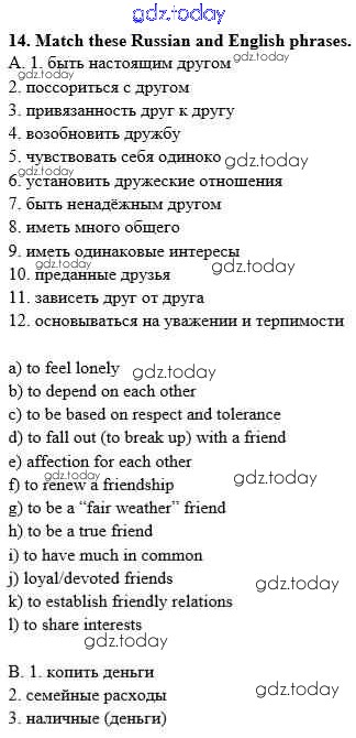 Ответы к Решение к Unit 2. In Harmony with Others 14 Рабочей тетради по Английскому языку для 10 класса Афанасьева, Михеева Дрофа Rainbow 2016