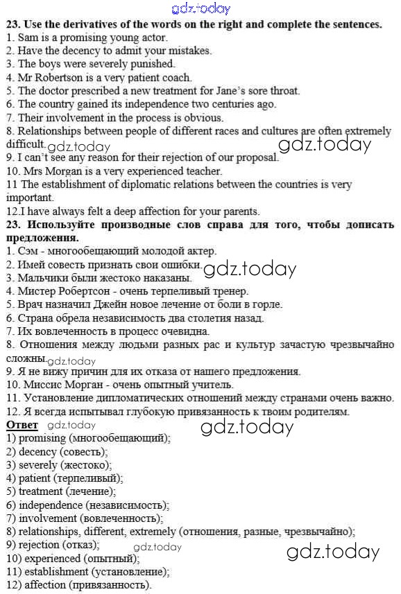 Ответы к Решение к Unit 2. In Harmony with Others 23 Рабочей тетради по Английскому языку для 10 класса Афанасьева, Михеева Дрофа Rainbow 2016