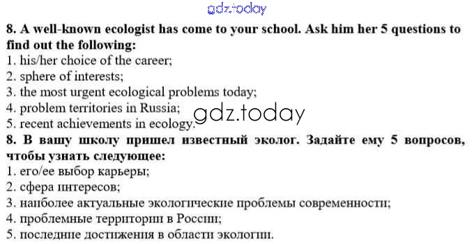 Ответы к Решение к Unit 3. In Harmony with Nature 8 Рабочей тетради по Английскому языку для 10 класса Афанасьева, Михеева Дрофа Rainbow 2016