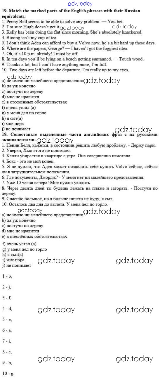 На страницах сайта gdz.today вы найдете учебный и вспомогательный материал, направленный на улучшения знаний школьной программы. ГДЗ - онлайн мир знаний Решение к Unit 4. In Harmony with the World 19 Рабочей тетради по Английскому языку для 10 класса Афанасьева, Михеева Дрофа Rainbow 2016