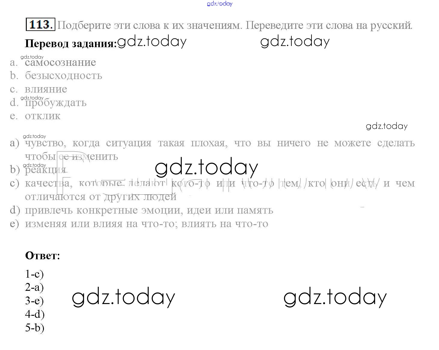 На страницах сайта gdz.today вы найдете учебный и вспомогательный материал, направленный на улучшения знаний школьной программы. ГДЗ - онлайн мир знаний Решение к Unit 1. Start anew 113 Учебнику по Английскому языку для 10 класса Биболетова, Денисенко Аст/Астрель Enjoy English 2016
