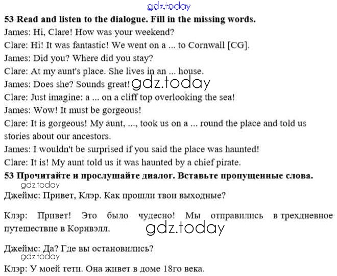 На страницах сайта gdz.today вы найдете учебный и вспомогательный материал, направленный на улучшения знаний школьной программы. ГДЗ - онлайн мир знаний Решение к Unit 1. Start anew 53 Учебнику по Английскому языку для 10 класса Биболетова, Денисенко Аст/Астрель Enjoy English 2016