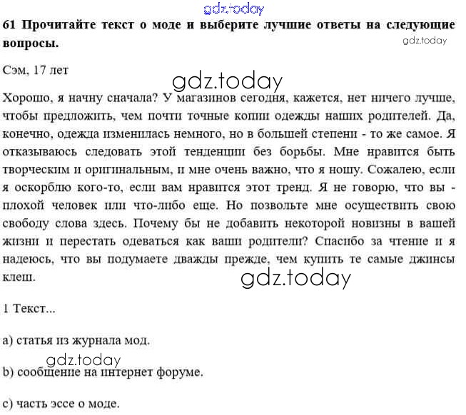 Ответы к Решение к Unit 1. Start anew 61 Учебнику по Английскому языку для 10 класса Биболетова, Денисенко Аст/Астрель Enjoy English 2016