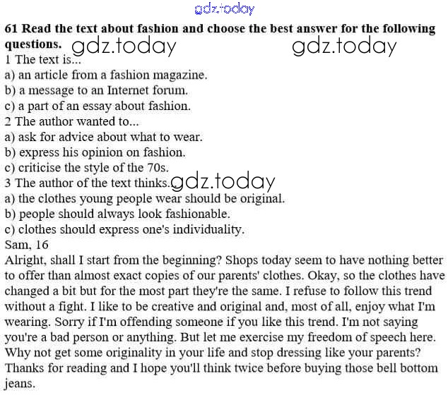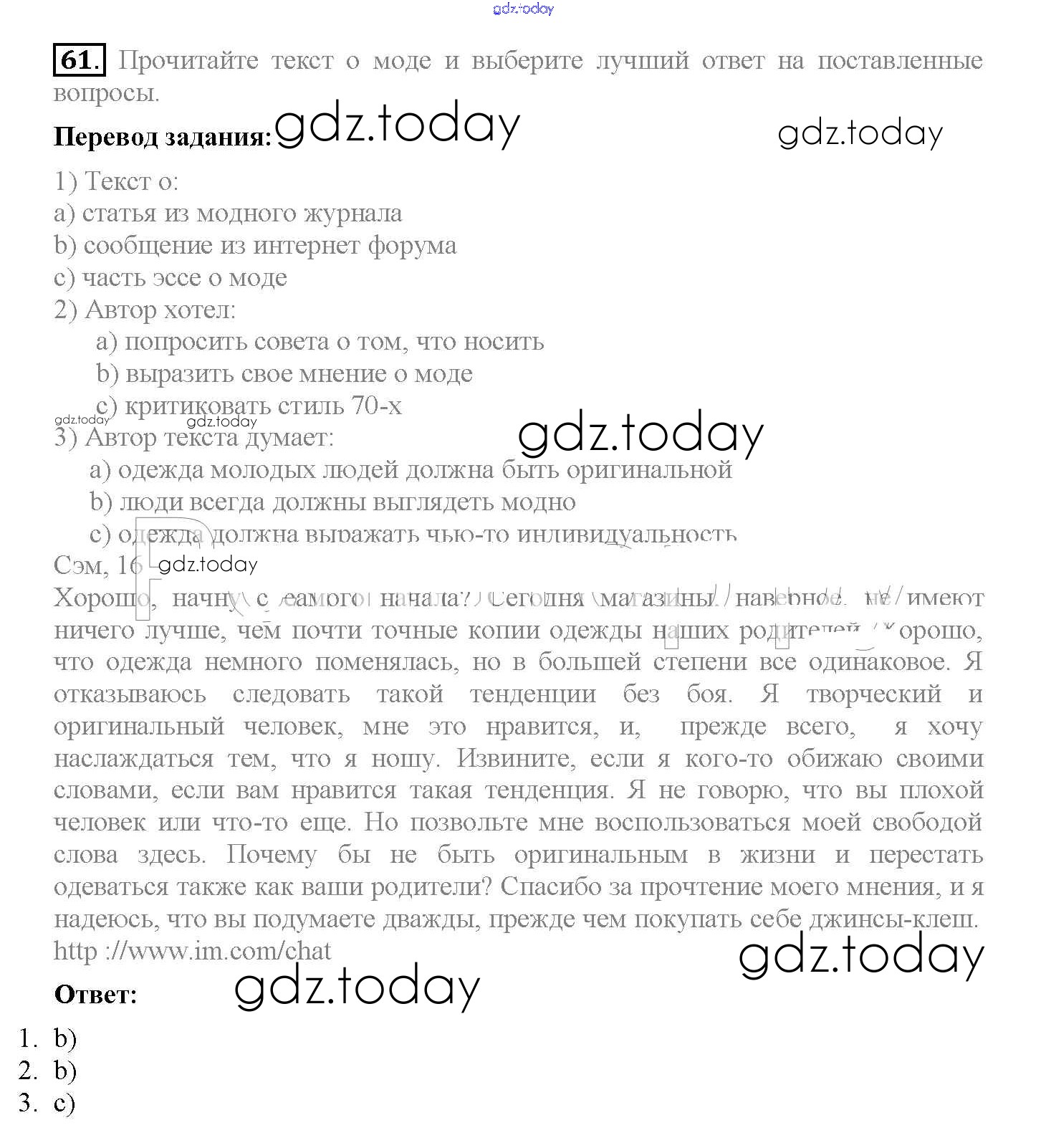 На страницах сайта gdz.today вы найдете учебный и вспомогательный материал, направленный на улучшения знаний школьной программы. ГДЗ - онлайн мир знаний Решение к Unit 1. Start anew 61 Учебнику по Английскому языку для 10 класса Биболетова, Денисенко Аст/Астрель Enjoy English 2016