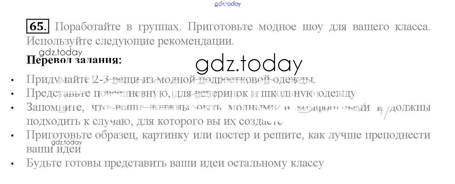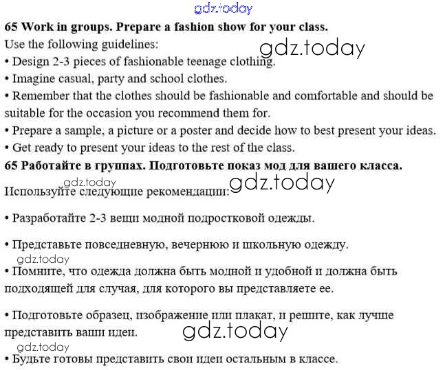 На страницах сайта gdz.today вы найдете учебный и вспомогательный материал, направленный на улучшения знаний школьной программы. ГДЗ - онлайн мир знаний Решение к Unit 1. Start anew 65 Учебнику по Английскому языку для 10 класса Биболетова, Денисенко Аст/Астрель Enjoy English 2016